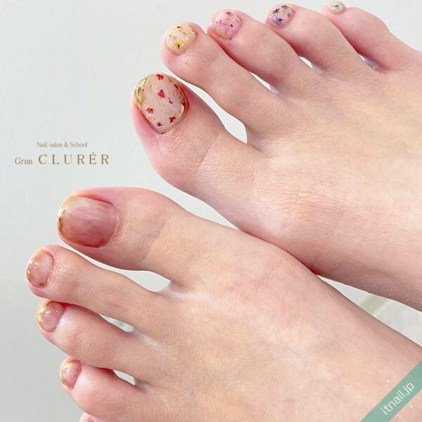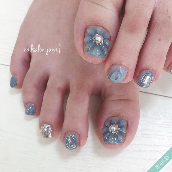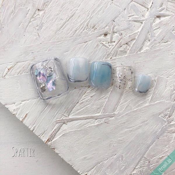 クリアなネイルチップに、透明感のあるシェルをたっぷりのせて、爽やかなフットネイルへ。寒色系でまとめれば、暑い夏も涼しく感じることができそう♡ブルーのもやもやネイルでニュアンス感をプラスするのもGOOD。