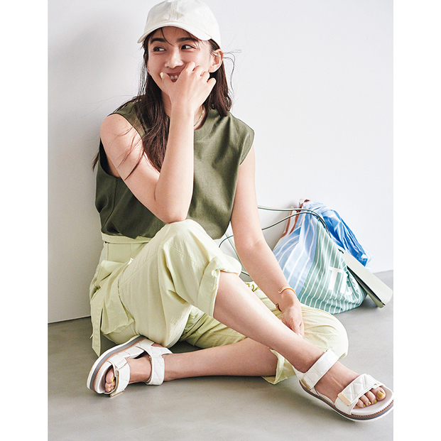 簡単なようでいて意外とバランスが難しい、コンサバさんの夏の足元選び。適度な抜け感を加えながら今年らしくアップデートする足元の正解バランスを考えました。Tシャツ&カラーボトムスのワンツーコーデには、スポーティな白サンダルが今年っぽい!オススメの白サンダル4選をお届けします。
