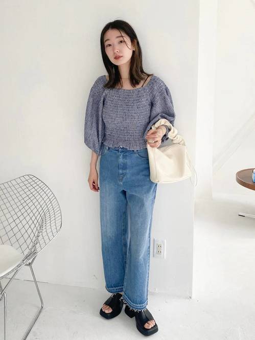 初めにご紹介するのは、夏コーデの定番ともいえる、デニムを使った着こなしです♪