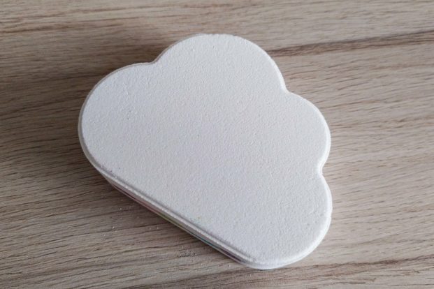 このマシュマロのような雲のような、カワイイ形のバスボムの名称は「レインボム クラウドフルーティWH」。