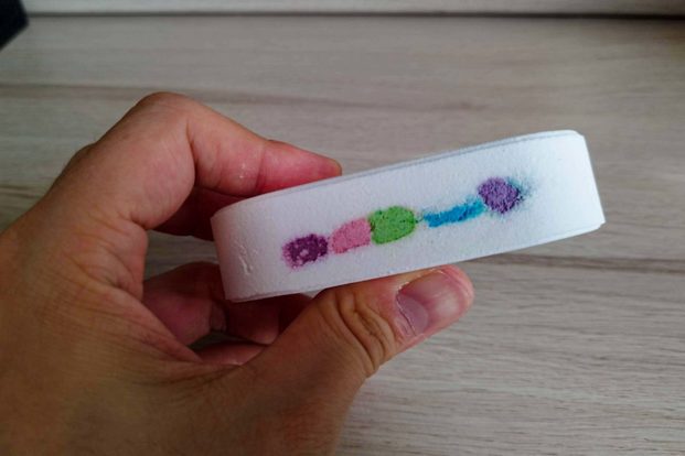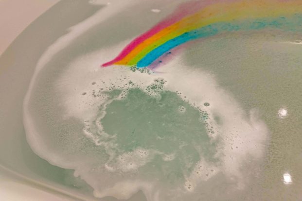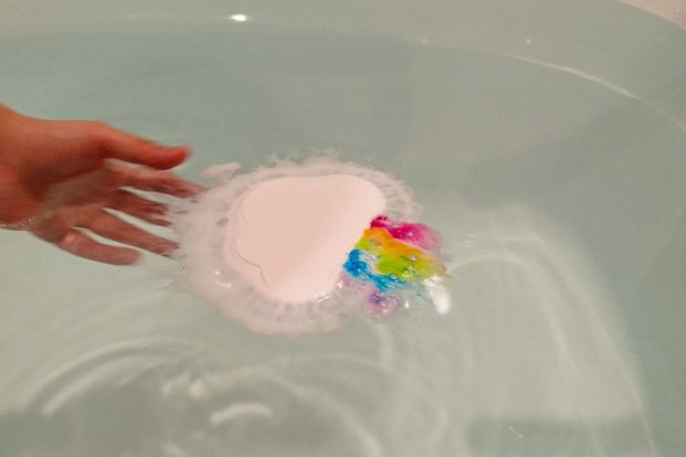 投下したバスボムは、約30秒経っても虹を描きながらシュワシュワと推進していく。お風呂には甘いフルーツの香りが広がっていた。