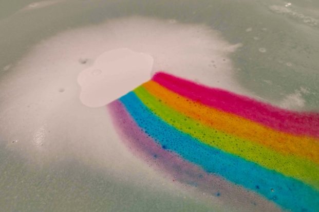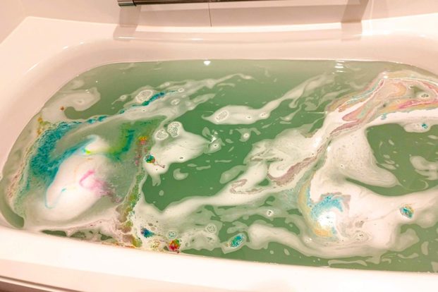 しかも水面には鮮やかな虹がかかったの如く、カラフルな色が広がっていく。これはテンション上がる。風呂に入るのがもったいないレベルだ…。