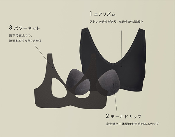 さらにパワーネットが胸を支えつつ、脇流れを抑えてくれるといいます。