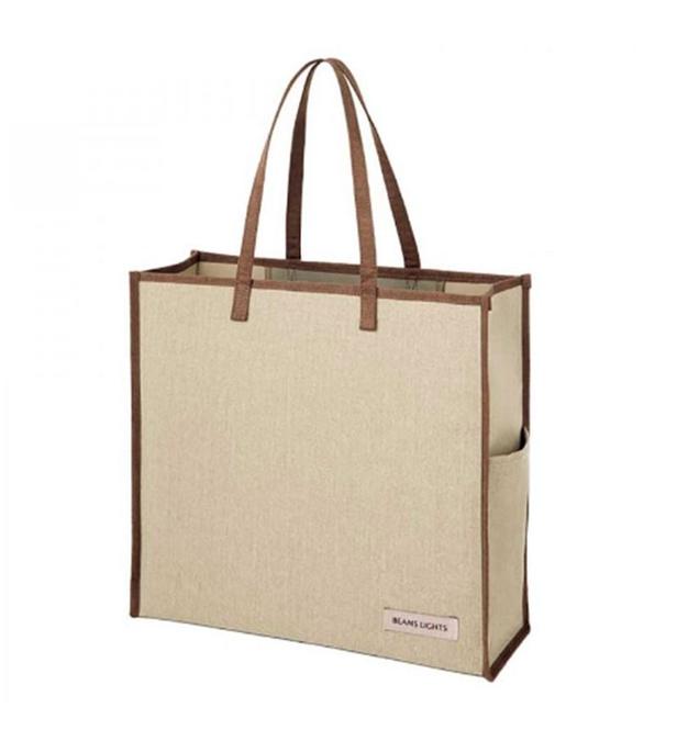 「ビームス ライツ」のビッグサイズトート。500mLペットボトルも入るサイドポケット、スマホなどの収納に便利な内ポケット付き。