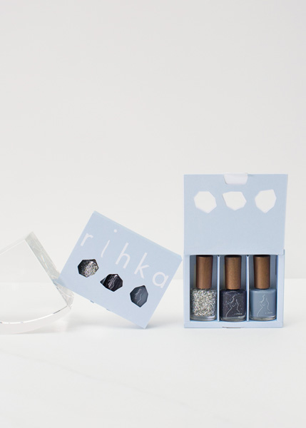 温度差の異なるブルートーンの「rihkaネイルポリッシュ」(各 税込2970円)は、凛としたり、落ち着いたり、涼やかな気持ちになったり…。