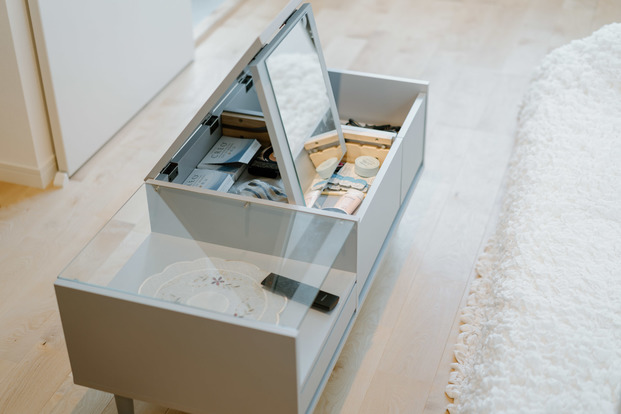 限られたスペースをできるだけシンプルな状態で維持したいなら、用途が2つ以上あるインテリアを選ぶようにするのがおすすめ。例えばこちらのお部屋では、ドレッサー兼ローテーブルをチョイス。色味も部屋の雰囲気と合っていて素敵です。(写真のお部屋はこちら)