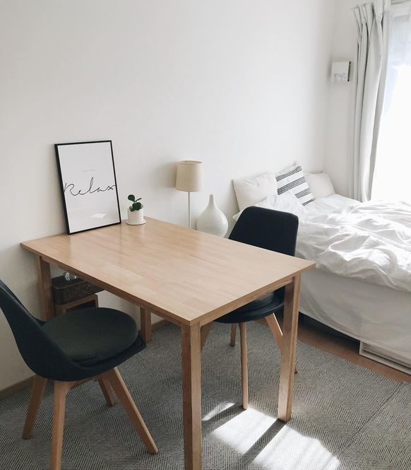 例えばこちらのお部屋では、ワンルームに思い切ってダイニングテーブルをドンと置きました。以前はローテーブルだったそうですが、こうしたことで仕事も食事も座ってするようになり、ダラダラ過ごす時間がなくなって良かったのだとか。「一人暮らしのワンルームには、ローテーブル」という当たり前が自分に合っているのか。一度疑ってみるのもいいですよね。(写真のお部屋はこちら)