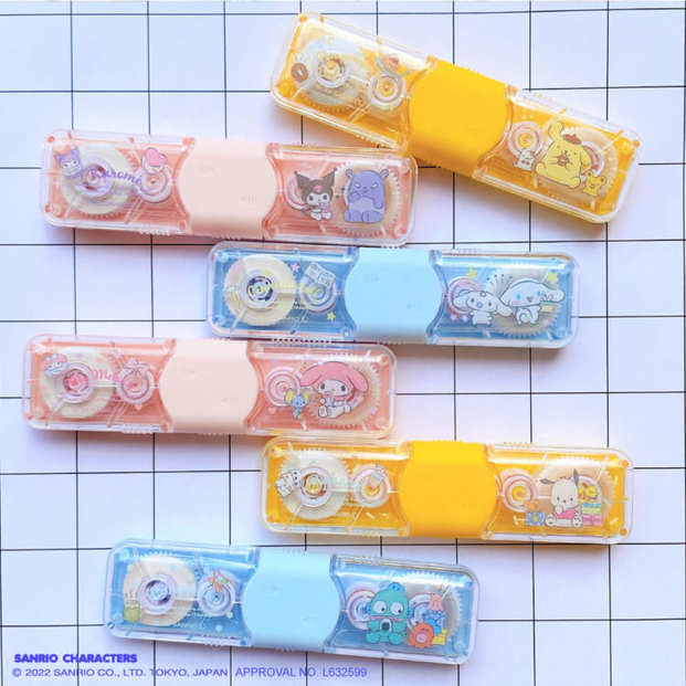ペンポーチの中身をスッキリさせたいという人にオススメな、修正テープとテープのりが一つになった万能文具。ポムポムプリン・クロミ・シナモロール・マイメロディ・ポチャッコ・ハンギョドンの、サンリオキャラクター大賞TOP10入りした人気キャラクターが勢揃いです。学生さんはもちろん社会人の方も、いざという時の為に一つ持っておいても良いかも♡