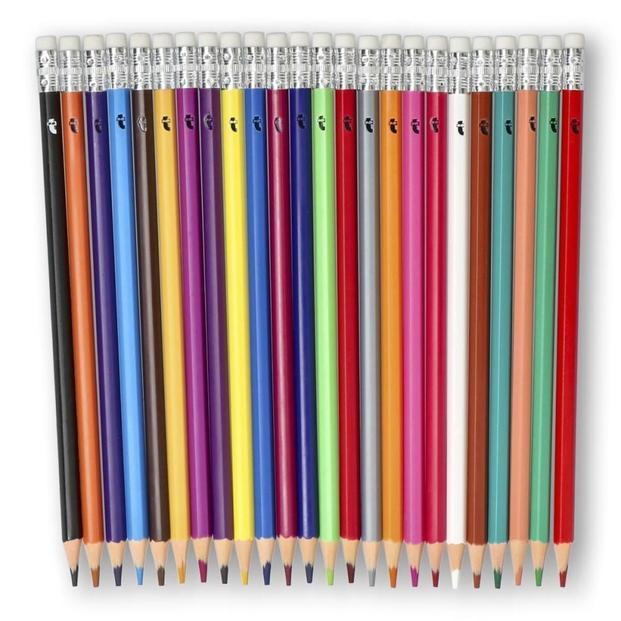 24色(24本)入り。それぞれに消しゴムも付いている色鉛筆セットです。夏休みの宿題やお絵描きに活躍。子どもに人気の商品だそうです。