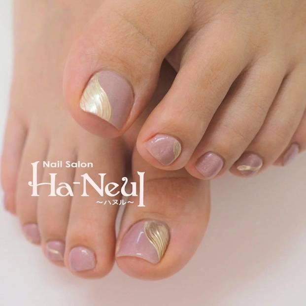 いい女に学ぶ夏のフットネイルデザイン①くすみローズ×ミラーネイル