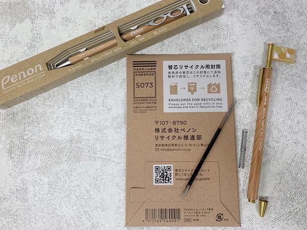 PENONの替芯パッケージは無料の返信用封筒になっており、使用済みの芯を入れてそのままポストに投函すれば(切手も不要!)、PENON側で回収をして適切にリサイクルしてくれます。