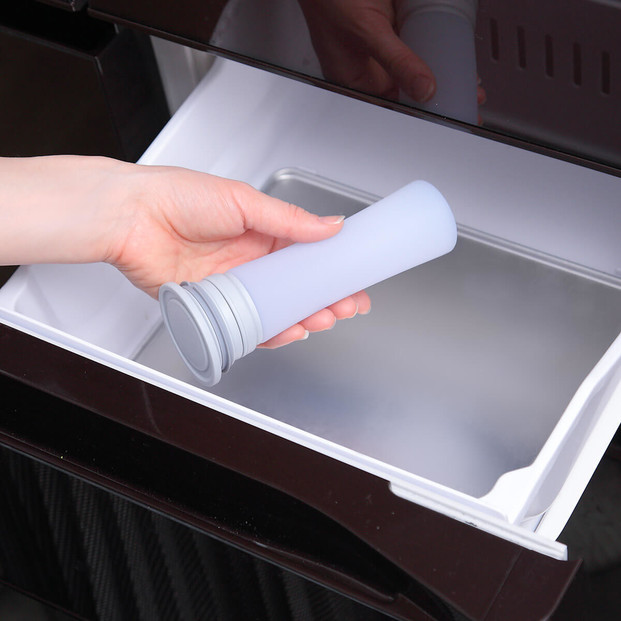 魔法瓶と同じ構造の専用ホルダーの中に、シリコンゴムでできた氷のうを入れて持ち運べるという優れものです。