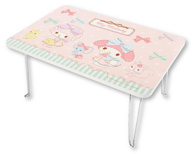 特に注目は、1等の「テーブル」。淡いピンク色をベースに、マイメロディとマイスウィートピアノ、そしてリボンなどのモチーフが散りばめられています。とってもキュートな仕上がりで、置いておけばより部屋が可愛くなりそうです。サイズは約横60×縦40×高さ29cm(使用時)です。