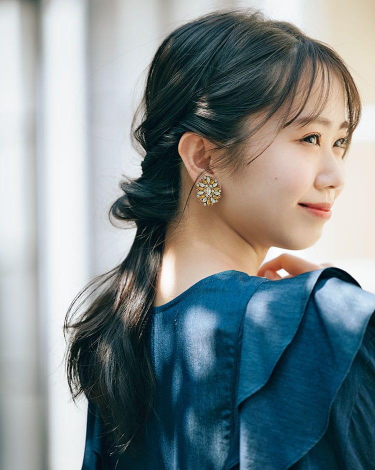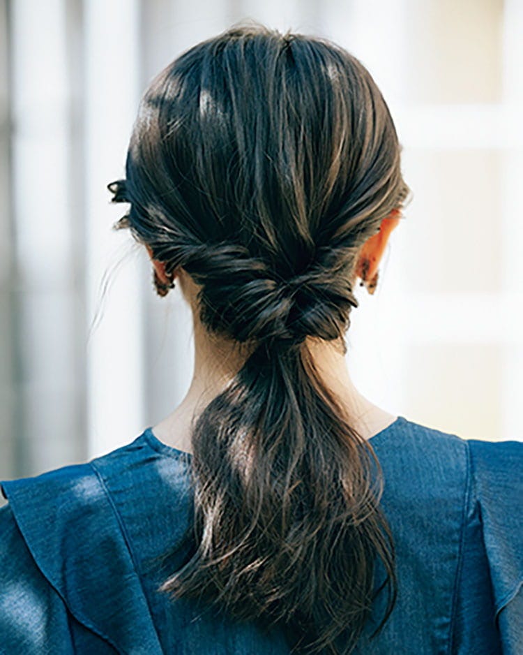 How to1 顔のそばに、ねじりを加えてこなれ感を出す