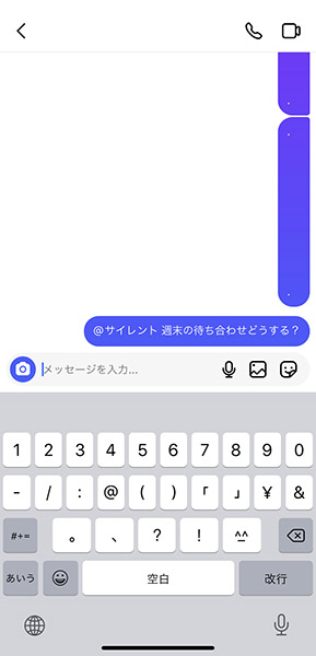 「@」マークを打っても『サイレント』の案内が表示されない場合は、アプリが本モードに未対応の可能性があるため、アプリのアップデートをおこなうなどしてから再度試してみてくださいね。