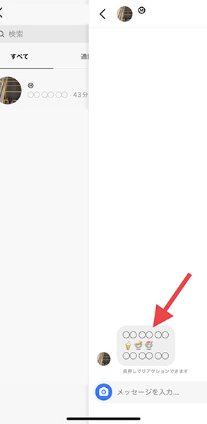 そんな時は、既読を付けたくないDM欄をダブルタップし、指を離すことなく右側へ指をスライドすると、DMを開封することなくメッセージ内容をチェックできますよ。