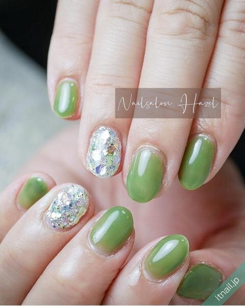 指先をキラキラと輝かせてくれるグリッターは、ネイルデザインでも人気のアイテムです。さり気なく使ったり、ニュアンス感を出したりと、いろいろな使い方ができるグリッターですが、存在感が欲しいときは「グリッターの敷き詰めネイル」がおすすめです。爪全体にグリーンを詰め込んだネイルは、宝石のような輝きで気分を上げてくれます。敷き詰めデザインにも、普段使いしやすいネイルから、特別なシーンにぴったりなネイルまであるので、ぜひ参考にしてみてくださいね。