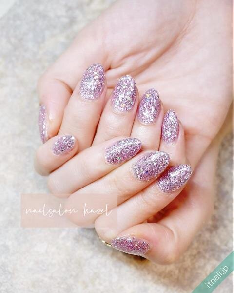 大小のグリッターで敷き詰めネイルを作るのもおすすめ!ミックスすることで、光の輝きも存在感も変わってきます。ザクザクした輝くを楽しみたいときにぴったり♡ラベンダー系なら、指先の透明感もプラスしてくれます。