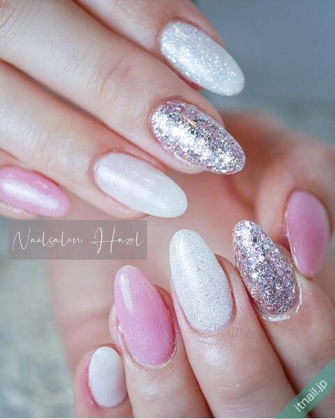 キラキラしたグリッターの敷き詰めネイルは、存在感がありますが一ヶ所に入れるくらいであれば初めての方もトライしやすいです♪トレンドのグリーンやイエローネイルの中にぽんっと入れて、華やかさをプラスしてみて!