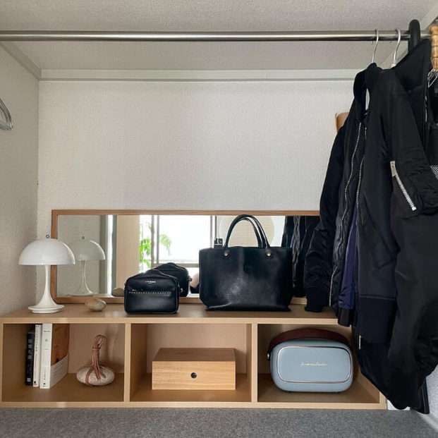 apartment301さんが所持している洋服の数は、なんと年間通して20着ほど。クローゼットにかけている洋服は選ばれたもののみで、ごくわずかなのだとか。オフシーズンの衣類はクローゼット上部にすべて収納しているそうです。