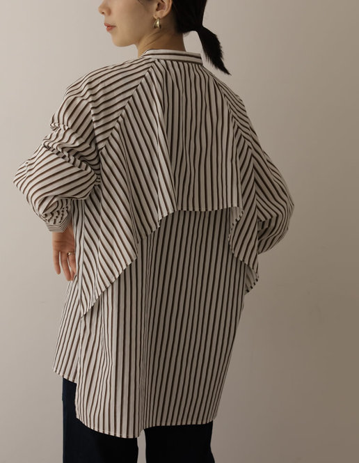 ひらりとゆらめく、バックのフレアデザインが華やかなシャツ。