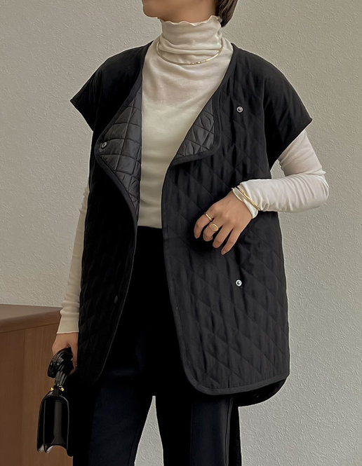肌寒くなる秋から冬本番まで、長く活躍しそうなキルトベスト。