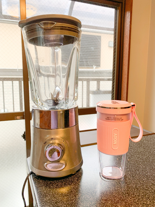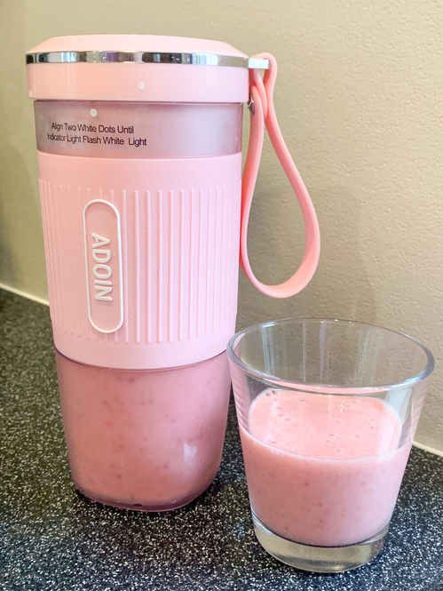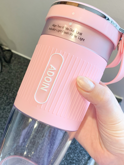Adoin(アドイン)の「ジューサー ミキサー 小型」がクセになる使い心地…!充電式で持ち運びができるから、いつでもどこでもスムージーが作れちゃうんです。正直、こんな使いやすいミキサーは初めてだ…!