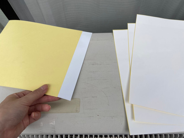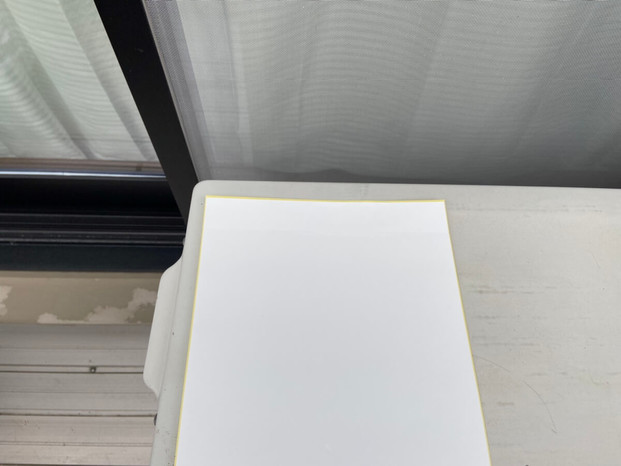 シールなので、お家の室外機に合う大きさにハサミで簡単にカットできます。目立たない白いシールなので、見た目がスッキリしているのもメリットですね。