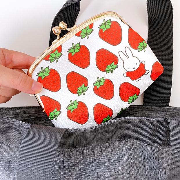 しまむらの「ミッフィーポーチ」がかわいすぎて即買いしちゃった!イチゴやお花畑に囲まれたミッフィーがたまらないの〜♡がま口のポーチなので、ガバっと開いて出し入れしやすいのもお気に入り◎