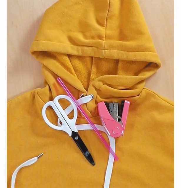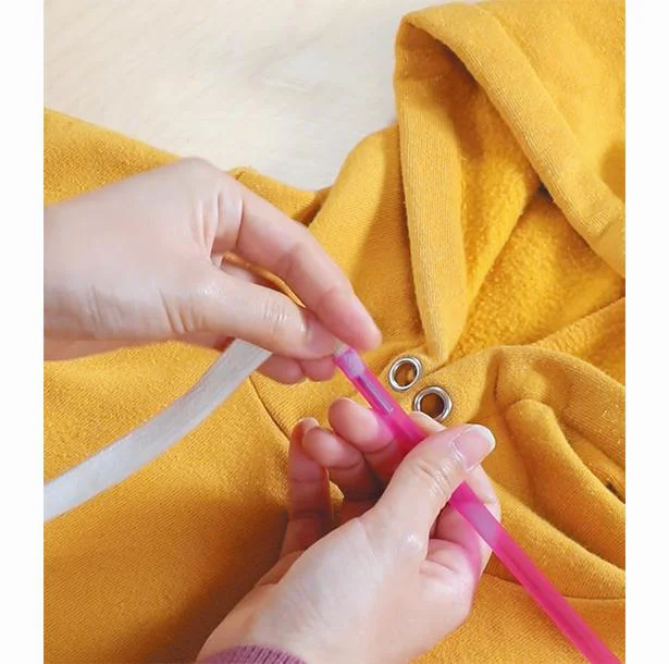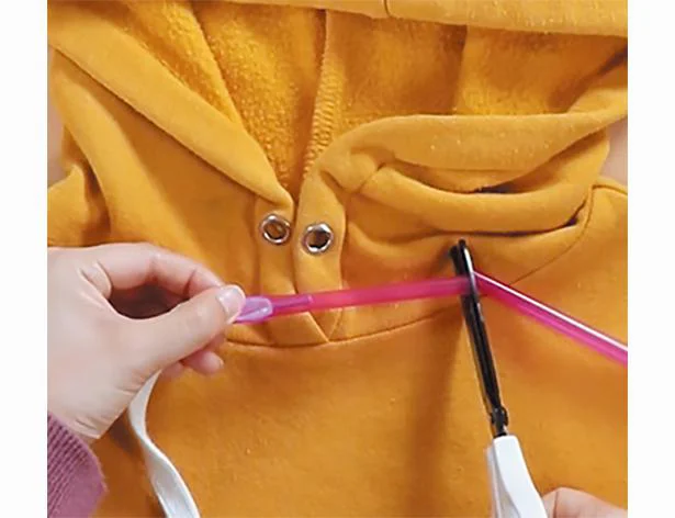 ひょんなことからパーカーのひもが抜けてしまうことってありますよね? それを戻すのがまた大変……。ではこれを簡単に解決する方法をお教えしましょう!