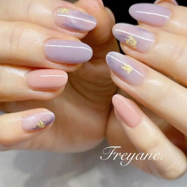 肌馴染みのいいカラーに飽きてきた方は、スモーキーピンクとパープルを合わせてニュアンスを出してみませんか?