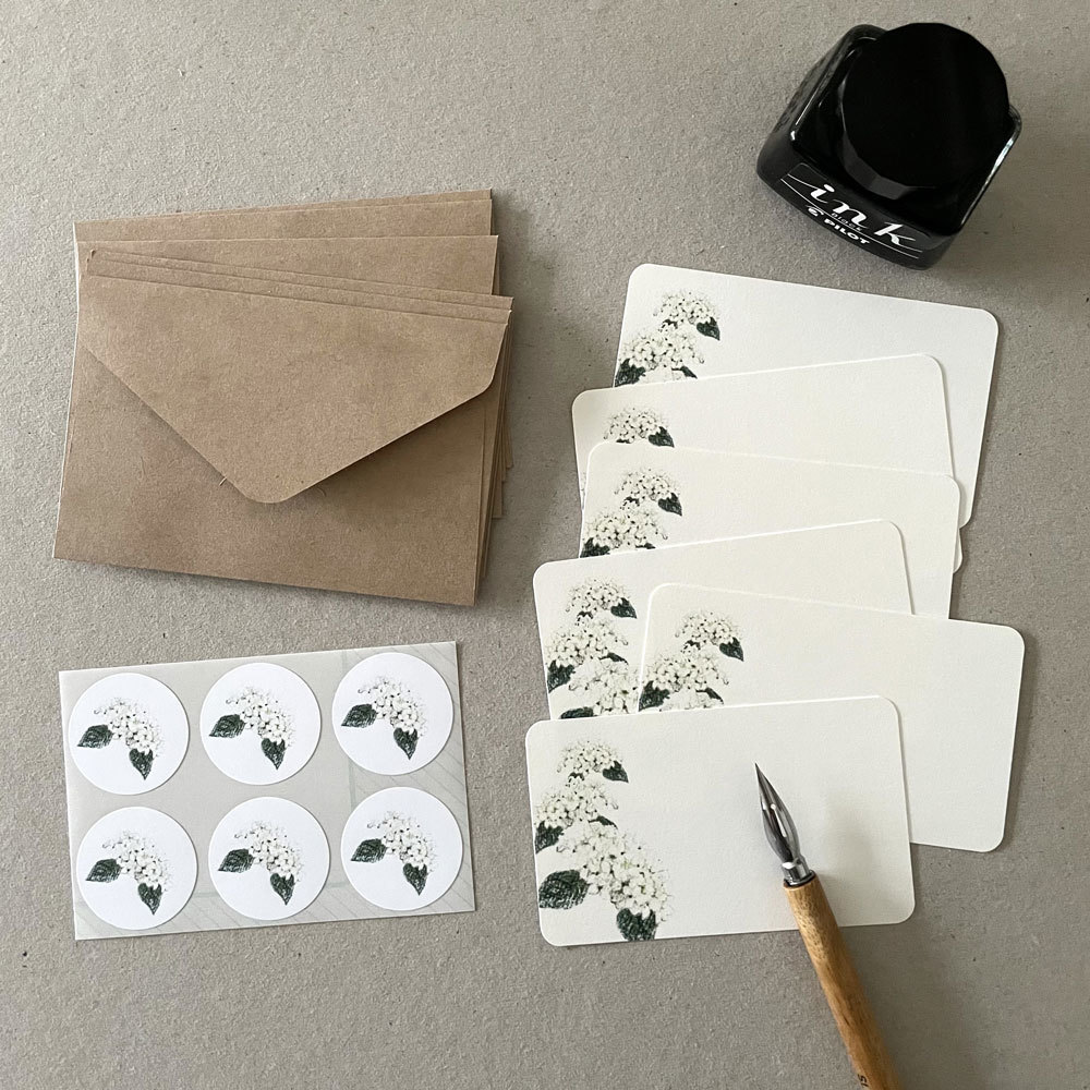 emiasahiさんの「白い紫陽花のメッセージカード シール 封筒 6枚セット」