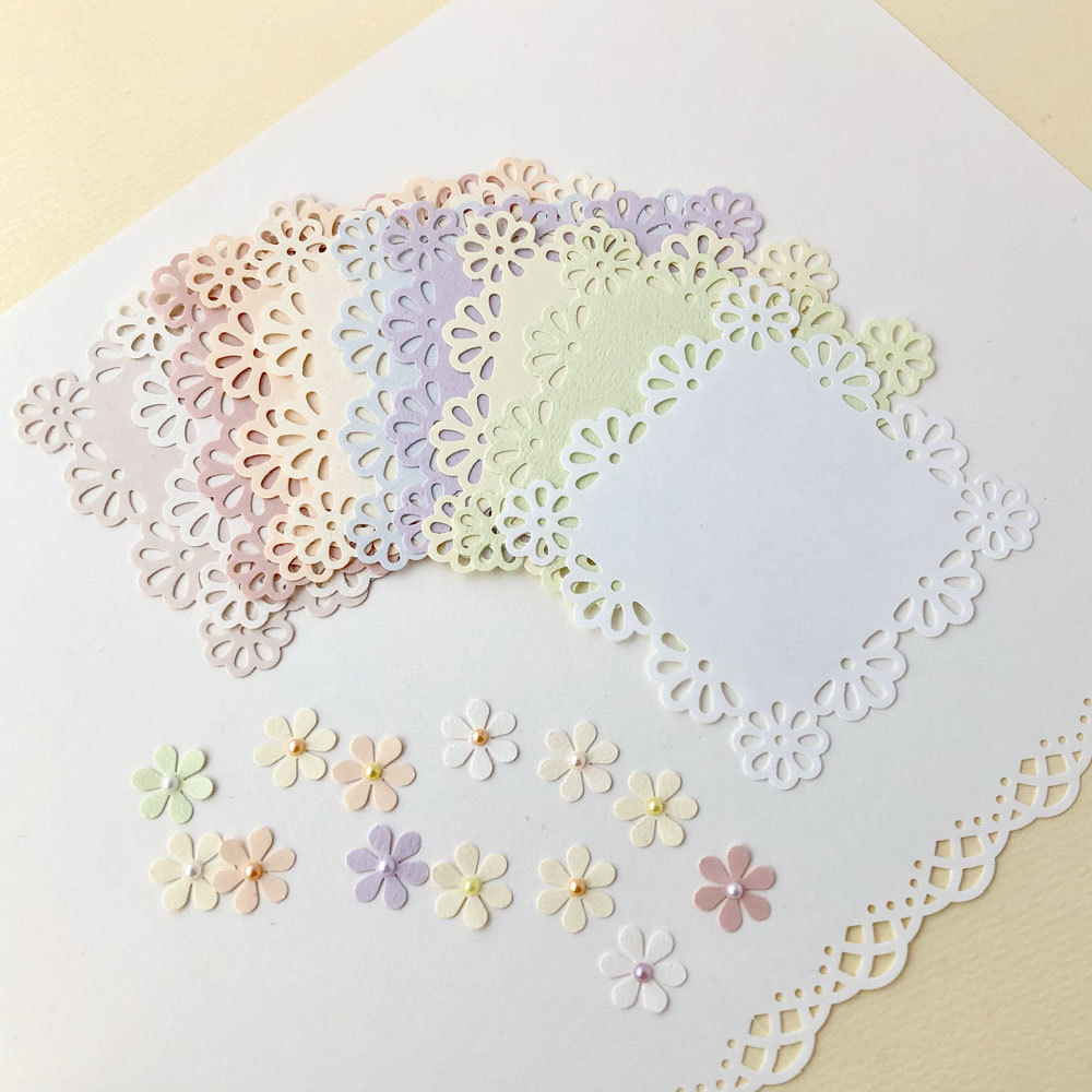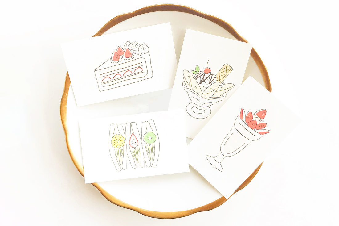 ワンポイントで使うのはもちろん、連続するように押したり、薄いインクを使って全面に押したり、カードの「絵柄」のように見せるのもおすすめ。手書きのメッセージの代わりに「メッセージスタンプ」を使うのもいいですね。