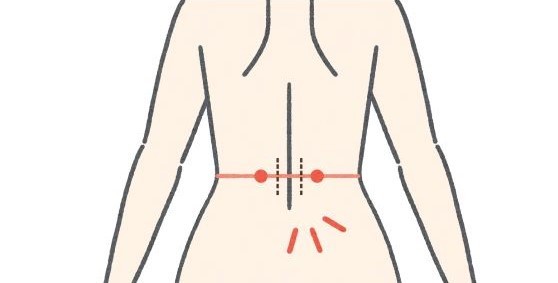 ・腎兪(おへその裏あたりで背骨から指2本分の左右にある)