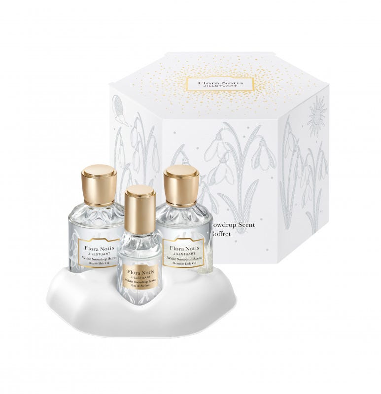 『フローラノーティス ジルスチュアート』から、幻想的な雪景色に佇む花“スノードロップ”の香りのホリデーコレクションが登場。こちらの“香り”は一昨年売れに売れた幻の香りの復刻版なのですが、“アイテム”自体は一昨年とはメンツが変わってお目見え。