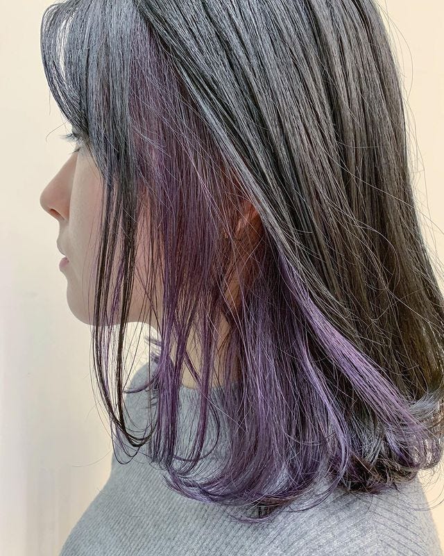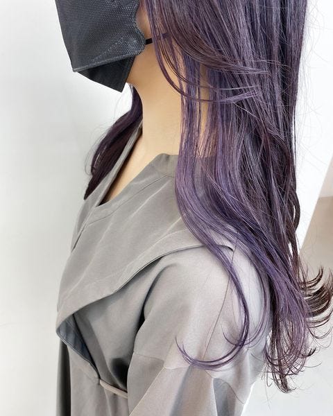 こちらのように青みが強いバイオレットカラーなら、黒髪や暗髪などのダークトーンにもよくなじみます。