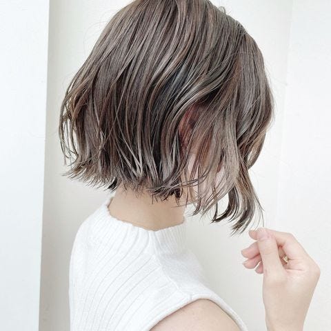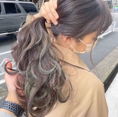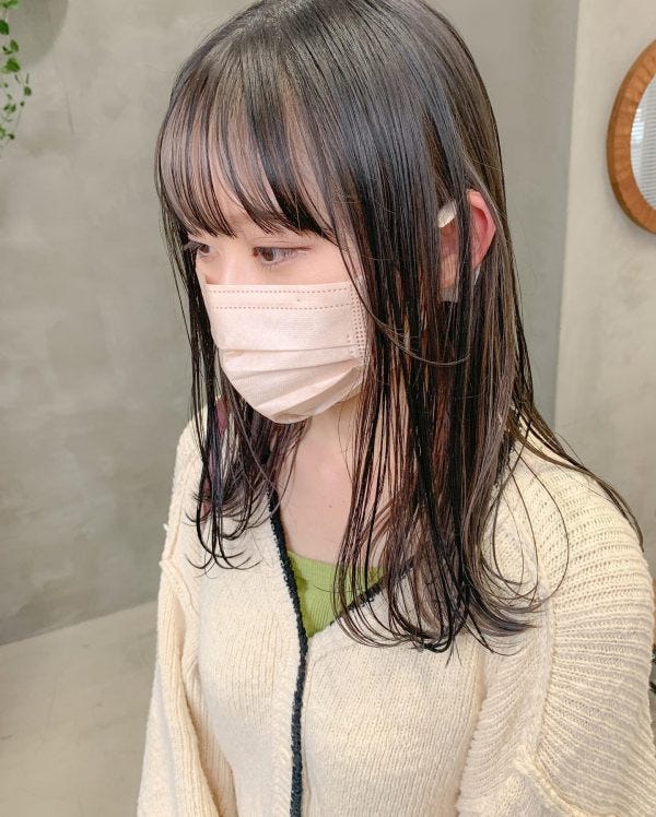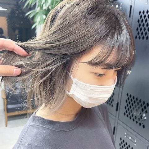 こちらは透明感があるトレンドのシアベージュを人気のインナーハイライトに使っています。