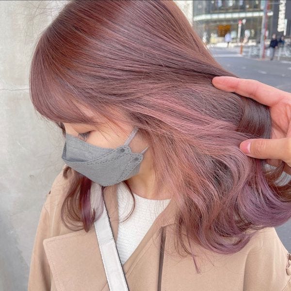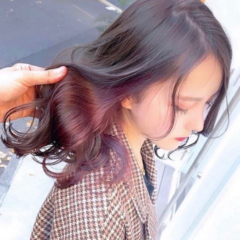 暗めのトーンで入れるピンクベリーアメジストは赤味の入った人気のブラウン系ベースと相性がいいので、トレンドの雰囲気を取り入れたい30代女性におすすめですよ。