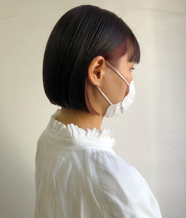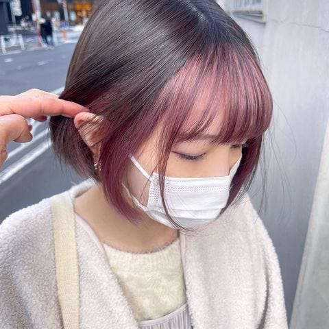 中でも落ち着きのあるダークトーンでトレンドの赤系カラーが入ったピンクなら、こちらのように黒髪のインナーカラーにしても目立ちすぎませんよ。
