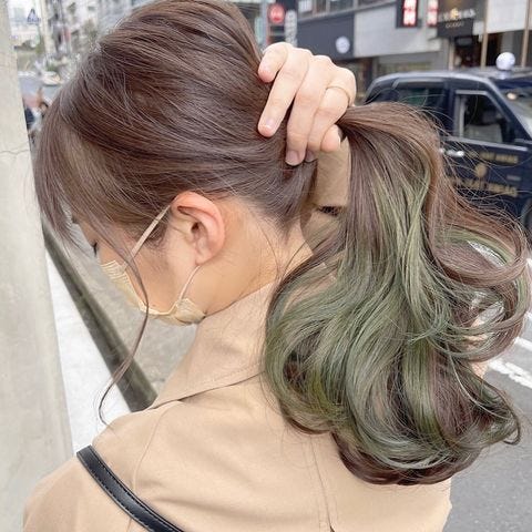 グリーン系のヘアカラーは色味に注意すると、ベースとなじみやすいカラーが多いので30代のイヤリングカラーにおすすめです。