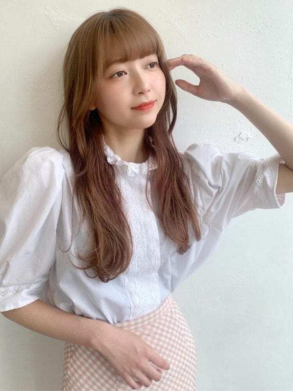 春にもおすすめの軽やかさが演出できるヘアカラーであり、重くなりがちなロングと組み合わせてもおしゃれで素敵ですよ。