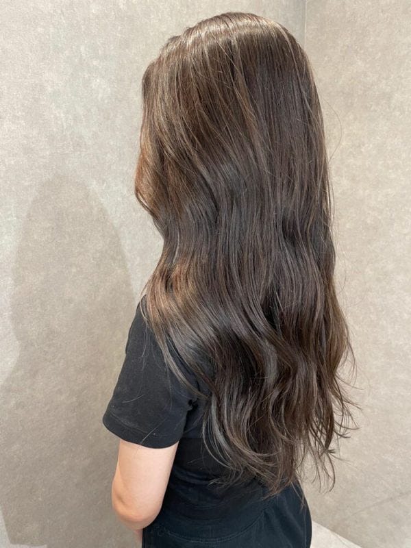 暗めながらもこなれ感がたっぷりなヘアカラーであり、おしゃれで今っぽいロングスタイルにしたい大人女性におすすめです。