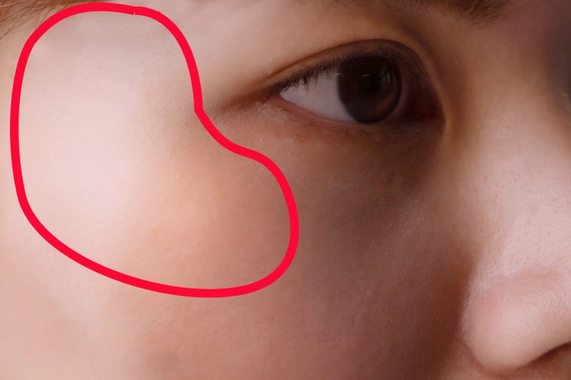 2ミリくらい指にとって頬の一番高いところ=焼けやすいところにポンポン塗っていきます。