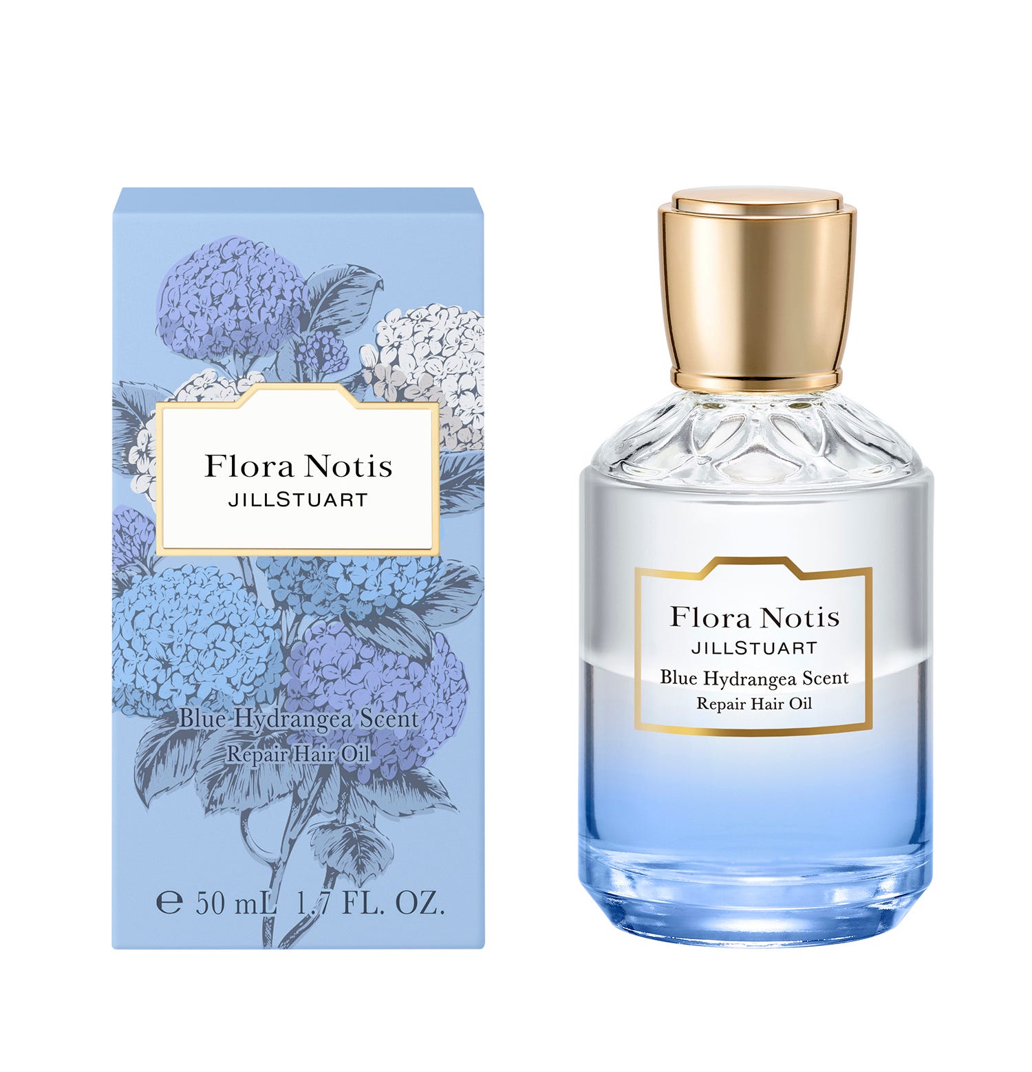 ブルーハイドレンジアの香りがふわりと香る、厳選した花々の恵みと良質な植物オイルを合わせた、やや軽やかな質感の2層ヘアオイル。植物由来の毛髪補修成分が髪のダメージをしっかりとケアをしながら、内側から溢れるようなうるおいとツヤを与えて”揺れツヤ髪”へと導いてくれる。ヘアオイルならではのやさしい香り立ちで、ライトフレグランスとしても使うことができる。雨空の下、色とりどりに咲く紫陽花を描いた限定デザインボックスと梅雨のうつろいを想わせるブルーのグラデーションをあしらった限定デザインボトル。