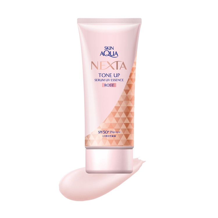 ゴールドパールを含んだローズピンクの日焼け止め。自然な血色感とツヤを演出しながら、美容液成分配合で乾燥からも守る。