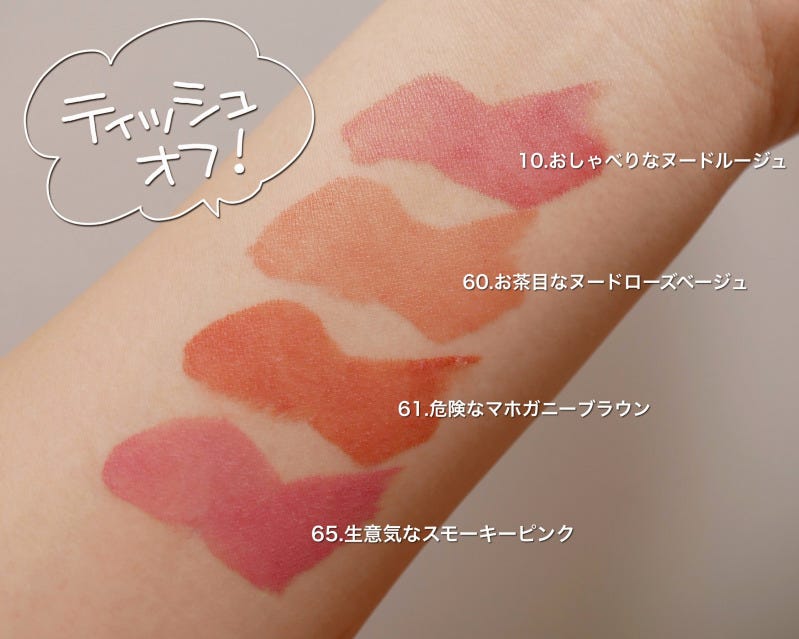 腕に塗ったリップをティッシュでこすってもこの通り!