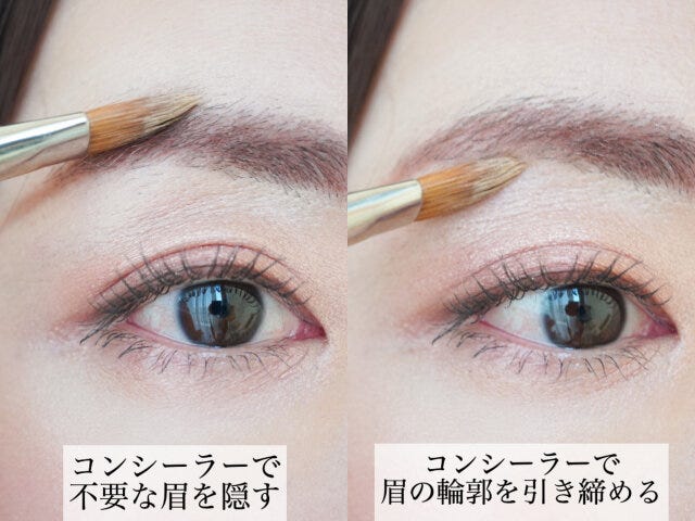 コンシーラーをブラシにとり、眉の不要な部分を隠すように塗りましょう。眉下にも眉のラインに沿うようにコンシーラーを入れると、洗練された印象になります。
