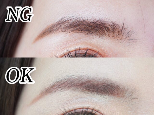 最初に眉の毛流れに逆らうように塗った後、毛流れに沿って整えるように塗れば完成です。