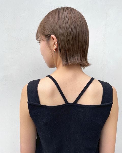 ノーセットでもおしゃれな切りっぱなしボブですが、耳掛けにしたり長さは短めにしたりすることで、顔周りや首元がすっきりとしてきれいに見えますよ。