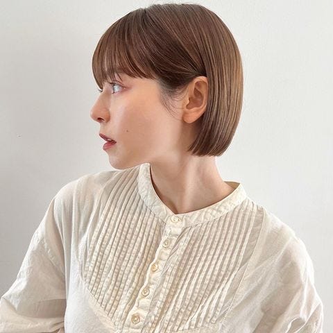長さが短い切りっぱなしボブは、面長さんにおすすめですよ。縦ラインを強調しにくく、すっきりとした印象になります。